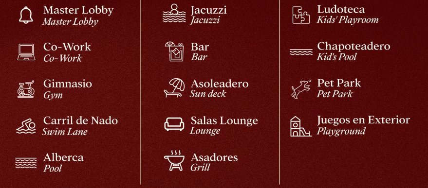 Más de 1,800 m² de amenidades de uso exclusivo para el área residencial.